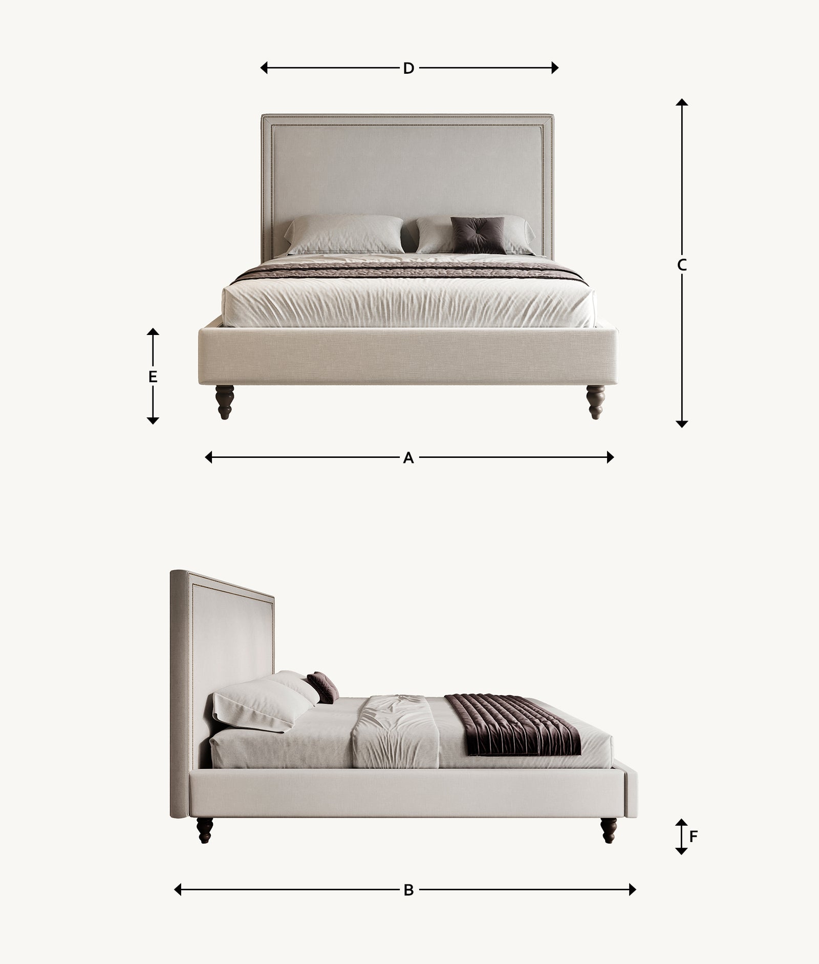 This bed boasts an elegant look with a gracefully square shaped headboard, giving it a vintage and refined appearance while the extended side rails enhance its visual appeal. Crafted with exceptional attention to detail, it offers a luxurious experience with plush foam padding for ultimate comfort. The sophisticated upholstery, tailored to match the bed frame fabric, adds to its unique charm.