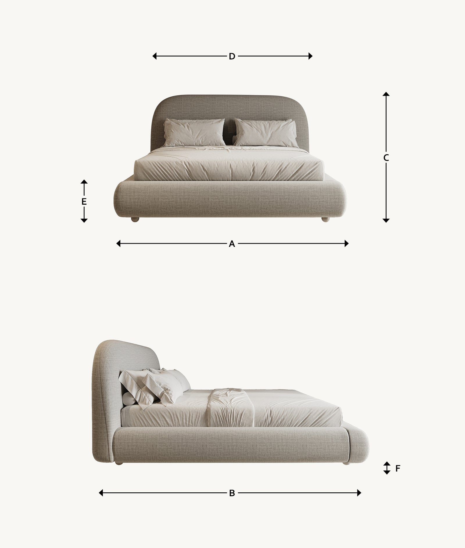 Its compelling design showcases an elegantly contoured headboard that imparts a soothing and refined aesthetic to the overall bed frame. The extended side rails contribute to the bed's magnetic allure, enhancing its visual appeal. This bed is a testament to meticulous craftsmanship, offering a luxurious experience with its plush foam padding that ensures the utmost comfort. Its distinctive charm is further amplified by the sophisticated upholstery, meticulously tailored to match the bed frame fabric.