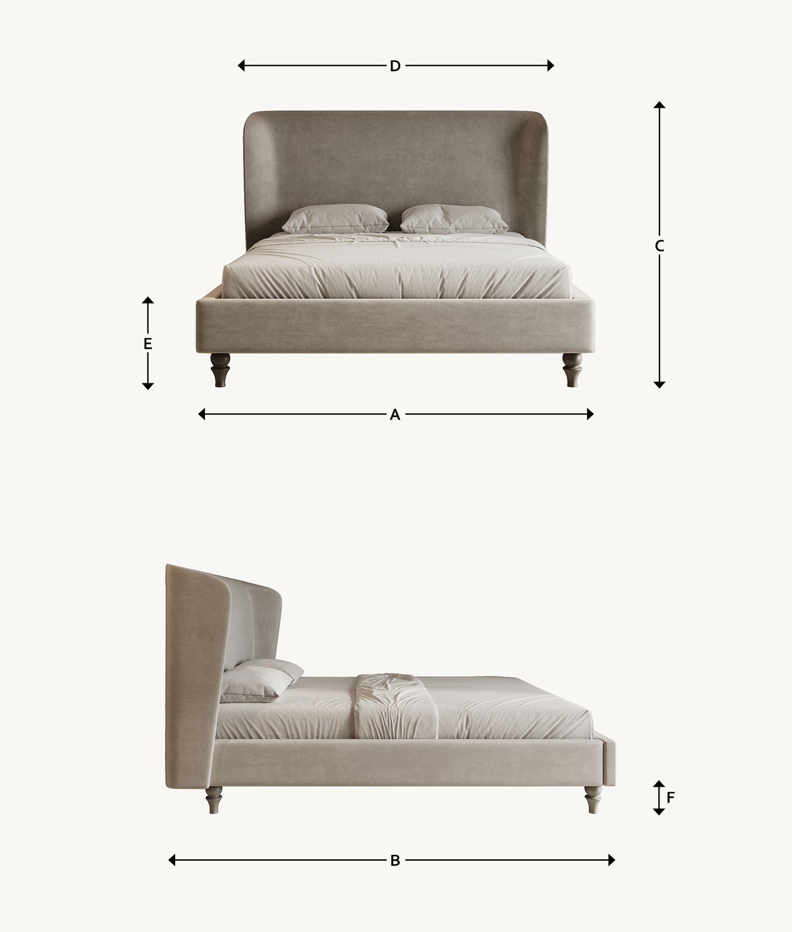 Featuring a robust foam-infused headboard and generously cushioned fabric-wrapped side panels, this bed exemplifies the pinnacle of expert craftsmanship. The prominent, gracefully contoured wings of the upholstered headboard provide a sense of cosy envelopment. The bed frame flawlessly merges sophistication with plushness, perfectly encapsulating Cómodo Living's unwavering dedication to superior quality and refined style.