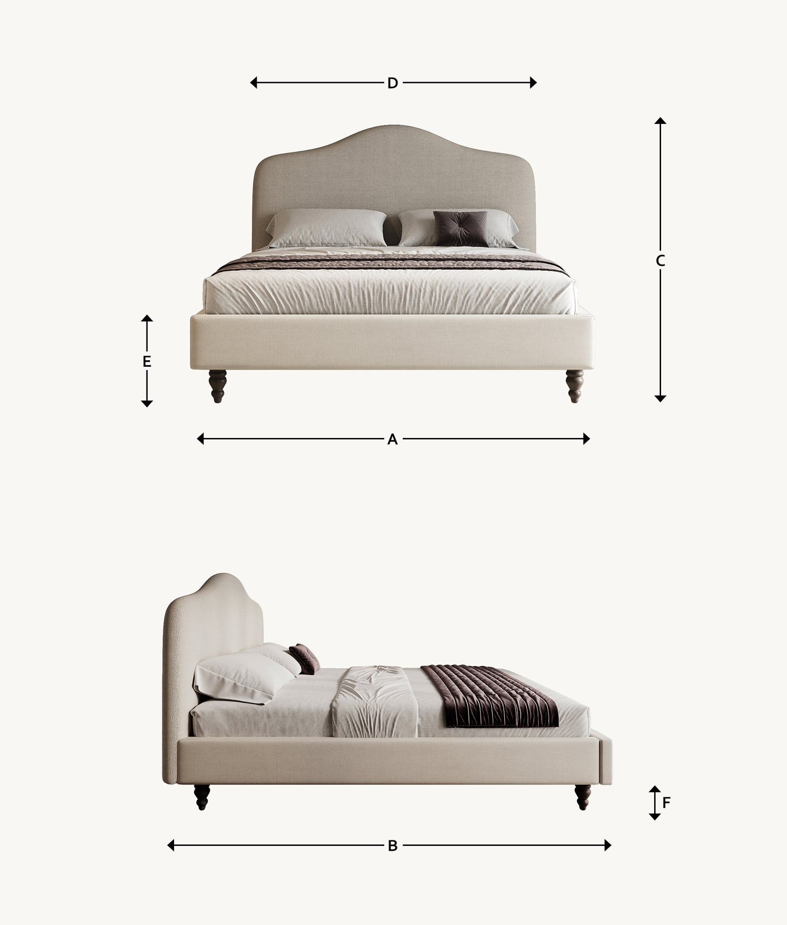 The Lowe" Bed Frame showcases a thoughtful blend of form and function. With its upholstered side rails and footboard, meticulously crafted in a complementary fabric, this bed frame not only elevates its aesthetic appeal but also prioritises safety and tranquillity. The headboard exudes a distinct sense of style that is certain to captivate your visual senses.