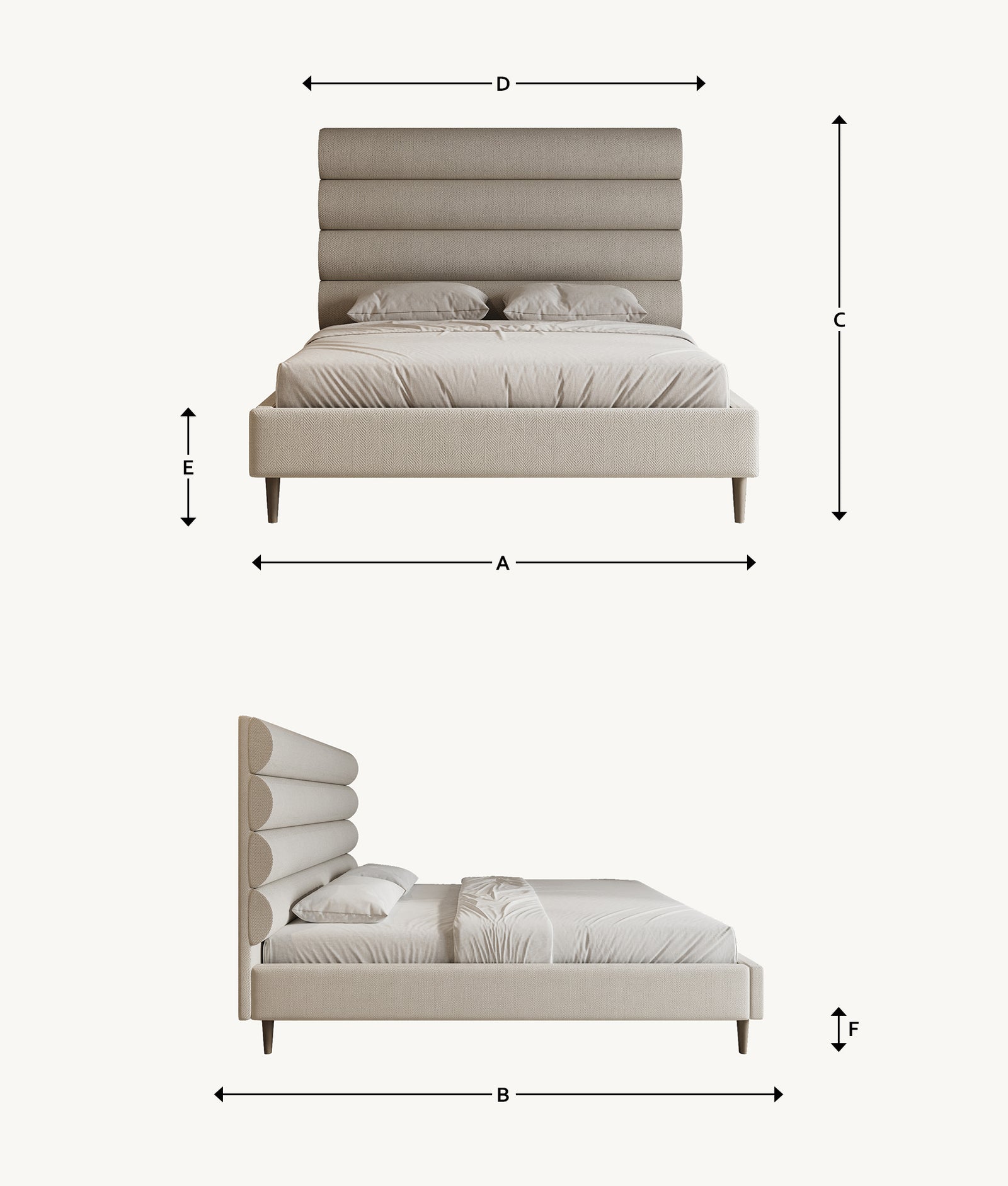 Take your sleep experience and relaxation game to another level with the Adara Bed, a masterful blend of modern design and supreme comfort. This premium bed features a designer headboard, enveloped in plush material and adorned with horizontal channel tufting, providing the perfect backrest for your moments of relaxation. The side rails and footboard slat are elegantly coordinated with soothing shades, exuding an air of luxury and sophistication. Crafted for lasting durability and generous proportions, the Adara Bed promises style and comfort.