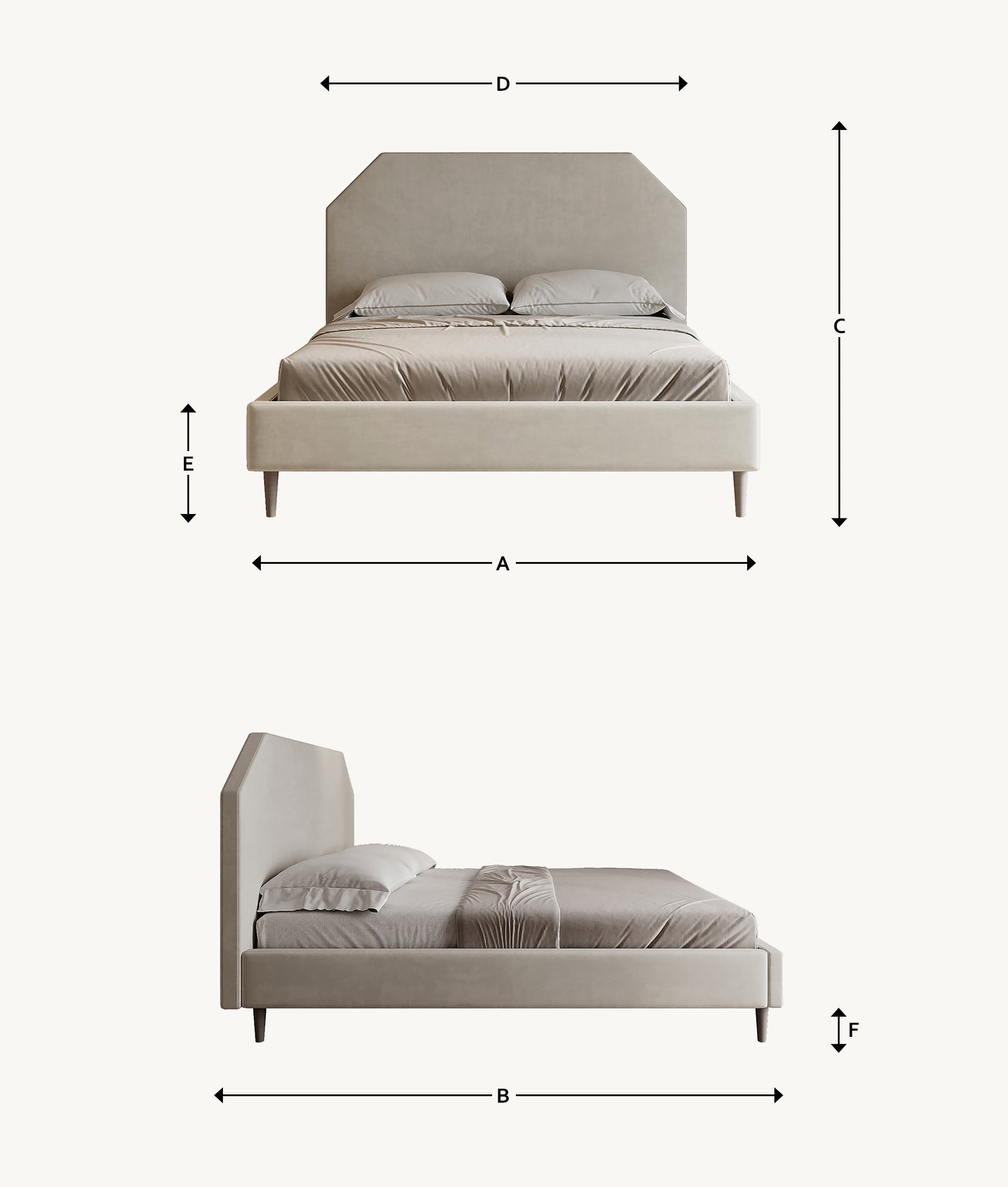 • Unique Headboard Design: The bed features a headboard with a distinctive square shape and cut-off top corners, adding a touch of contemporary style to your bedroom.