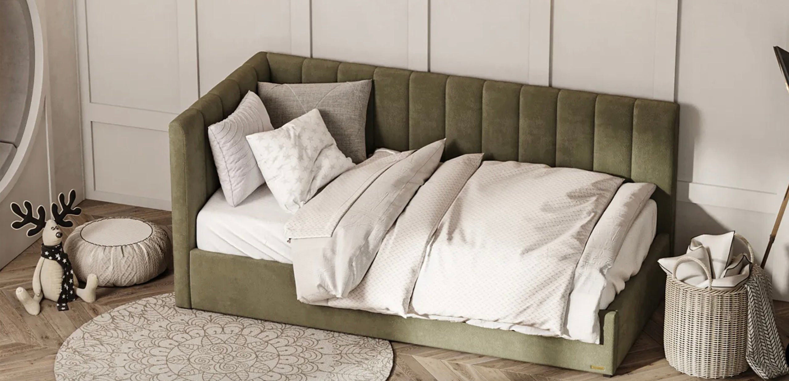 Its plush headboard and sideboard, upholstered with the same shade of high-quality fabric, create a seamless, stylish focal point while the durable foamed side rails ensure lasting sturdiness. Deep tufted vertical strips on the headboard and sideboard lend an attractive touch, making it not just a bed but a piece of art that enhances your home's aesthetics. Beyond aesthetics, "The Lilly Bed" offers practicality by protecting your child from cold walls, thanks to its plush and durable material.